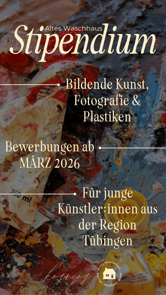 Das Waschhaus Stipendium ist ein Förderprogramm des Alten Waschhauses in Trägerschaft von Kosmos e.V. Wir ermöglichen einer ausgewählten Künstler*in, ihre Arbeiten acht Wochen lang im Alten Waschhaus auszustellen – begleitet durch unsere professionelle Unterstützung in Planung, Präsentation und Öffentlichkeitsarbeit.