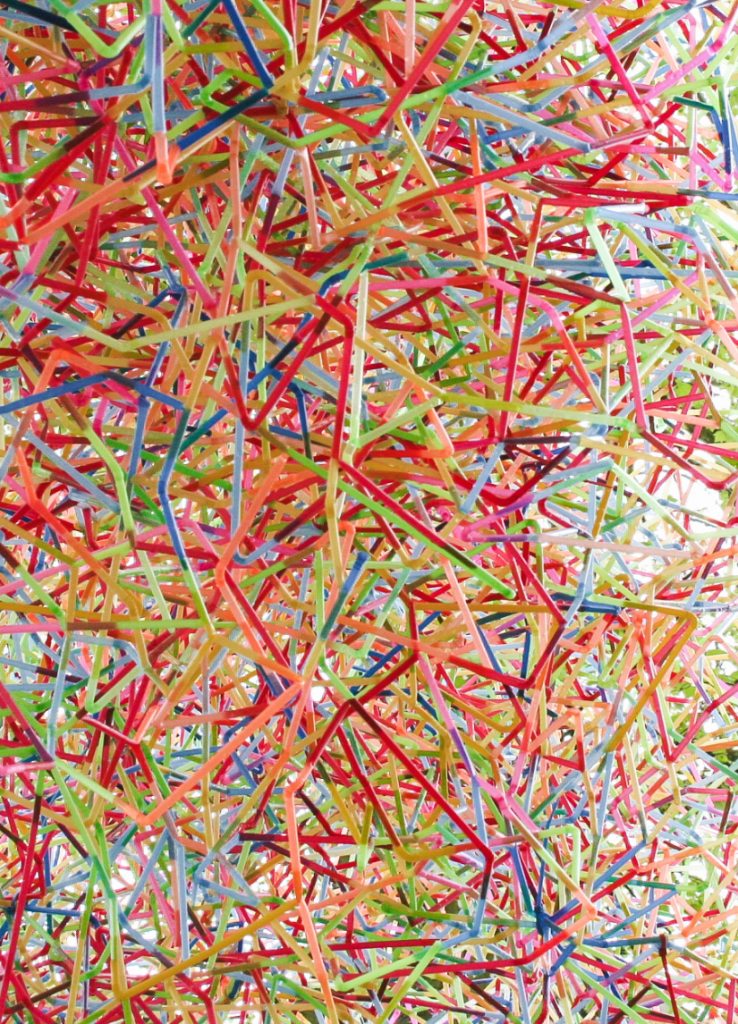 Vor fast zwei Jahrzehnten fesselte mich die Schönheit, Transparenz und Vielfalt der Farben des damals alltäglichen Massenproduktes. Ich hatte in den Plastikstrohhalmen mein Material gefunden. Ich war begeistert und wie sich später herausstellte, wusste ich nicht, welche vielfältige Möglichkeiten sich für mich eröffnen würden. Es wurde zu einer Quelle der Inspiration und entfesselte meine Kreativität.